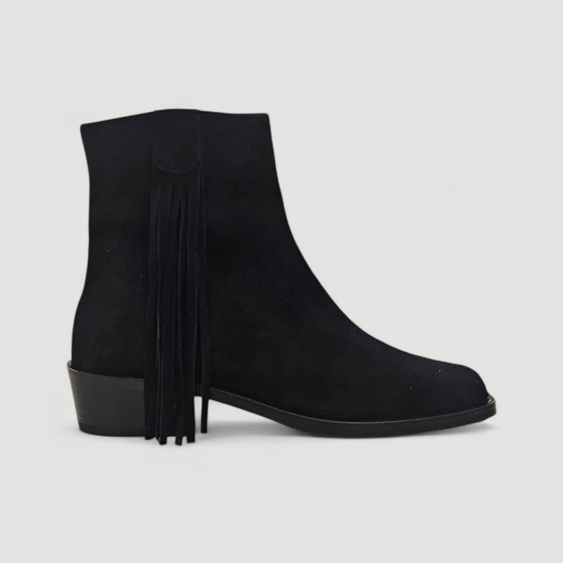 Crafted from genuine suede leather, these boots deliver refined elegance with a modest heel that ensures all-day comfort without compromising style. The signature accessory adds a distinctive touch, elevating your...